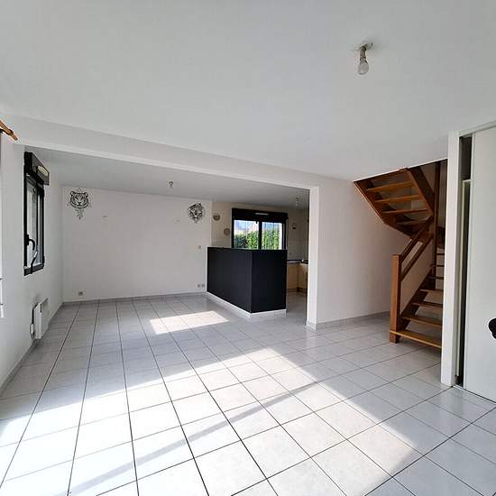 LOCATION - MAISON - A 2 pas de la plage du Vougot à Guisseny - Une belle pièce de vie ouverte sur la cuisine aménagée et équipée - A l'étage 3 belles chambres et une salle de bains avec WC. Un garage et un jardin clos. LIBRE.