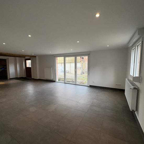 Maison individuelle située à KOGENHEIM, Rue de l'Ill, d'une surface habitable de 203,81m2, comprenant au rez-de-chaussée une entrée avec placard aménagé, un grand espace salon, une cuisine équipée ouverte sur une salle à manger, un cellier, une salle d'eau avec chaudière et WC, à l'étage un palier avec placards bas, une salle de bains aménagée, une grande chambre, une salle d'eau équipée avec WC, deux chambres et un espace dressing, une terrasse, un jardin et deux places de parkings à l'intérieur, l'ensemble sur un terrain de 4,49 ares. Libr...