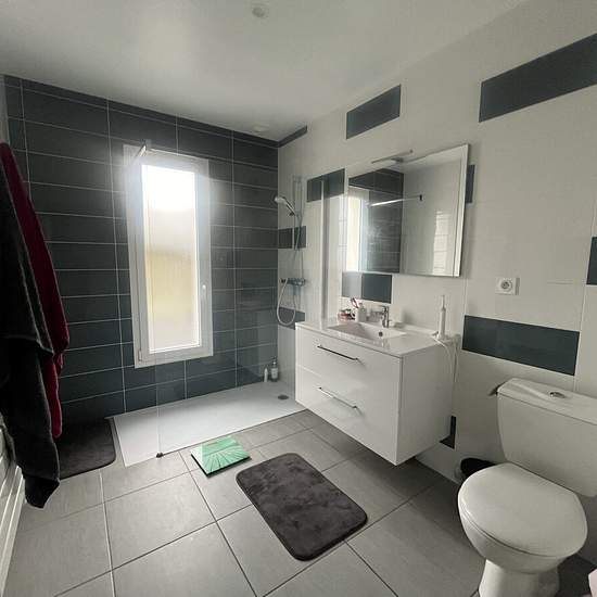 300 m de l'Océan, maison contemporaine de plain-pied composée d'une vaste pièce de vie avec poêle à granulé, cuisine américaine, 2 chambres, salle d'eau douche Italienne wc, cellier, garage fermé, parking. Sur l'avant terrasse exposée sud. Loyer 800€. Loyer de base 800 €/mois. Provision sur charges 25 €/mois, régularisation annuelle. Dépôt de garantie 800 €. Classe énergie B, Classe climat A Montant estimé des dépenses annuelles d'énergie pour un usage standard : entre 500.00 € et 500.00 € sur les années 2021, 2022 et 2023 (abonnements compr...