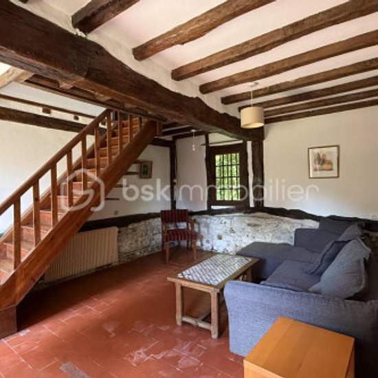 Située au cœur du pays d'Auge, à quelques minutes de Pont-l'Évêque et de la Côte Fleurie, cette jolie maison normande à colombages offre un cadre de vie paisible et plein de caractère. D'une surface de 80 m², elle se compose d'un bel espace de vie avec poutres et pierres apparentes, regroupant une cuisine aménagée et équipée, un coin repas convivial et un salon chaleureux pour se détendre. L'espace nuit accueille deux belles chambres, dont l'une ouvre sur un petit balcon, ainsi qu'une salle de bain avec baignoire et WC. Meublée, la maison al...