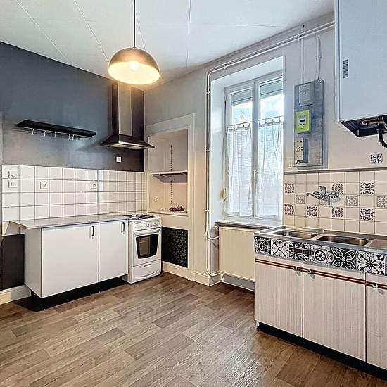 Maison de ville à louer. Maison de plain-pied à louer dans la rue du Maréchal Joffre au CREUSOT D'une surface de 63 m2 habitables + terrain privatif et clos d'environ 140 m2, elle est composée d'une cuisine meublée et équipée ( gazinière, hotte ), un petit séjour, 2 chambres avec parquet, une salle de bains, et WC séparés. Le chauffage se fait par une chaudière au gaz de ville. Une cave occupe toute la surface de la maison. Disponible immédiatement, cette maison est au loyer de 685 € dont 15 € pour la taxe ordures ménagères. N'hésitez pas à ...