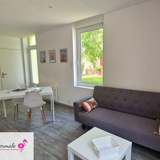 La Thermale *** A 300 m à pied des thermes, découvrez cette maisonnette de 40 m². Maisonnette entièrement rénovée de 40 m². Elle comprend une belle pièce de vie avec salon et cuisine ouverte, une chambre indépendante avec sa salle d'eau et un espace buanderie, et des toilettes séparée. Décorée avec goût, vous vous accorderez une pause détente pendant votre séjour. Draps et serviettes compris Elle dispose également d''une place de parking privative Tarif spécial curiste : 750 euros / 3 semaines Tarif à la semaine 350 euros Si besoin : Forfait...