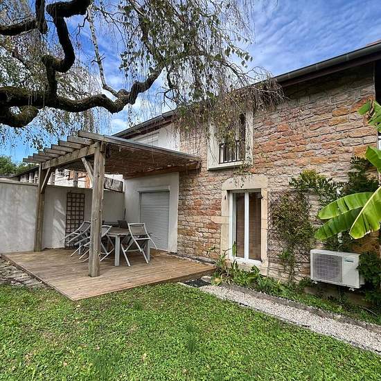 À Louer - Maison meublée. À LOUER - Maison meublée, mitoyenne d'un côté d'une superficie de 77m² composée au rez-de-chaussée d'une pièce de vie salon séjour, d'une cuisine indépendante aménagée et équipée et d'un wc indépendant. À l'étage : 2 chambres, une salle d'eau avec wc. La maison bénéficie d'un jardin clôturé aménagé d'une terrasse avec pergolas en bois, d'un terrain de pétanque et d'un cabanon de jardin. Électricité individuelle Chauffage individuel électrique + climatisation réversible au rez-de-chaussée Eau chaude individuel...