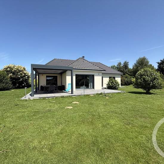 CENTURY 21 Saint Hélier vous propose à quelques minutes de Beuzeville en campagne sans être isolé cette maison contemporaine de plain pied très lumineuse. Elle comprend une entrée, une cuisine aménagée et équipée ouverte sur séjour avec poêle à bois. Trois chambres dont une avec salle de douche, salle de bains avec douche, cellier et vestiaire. Terrain d'environ 1800 m² entièrement clôturé. Libre au 05 février 2026. Nous vous rappelons que suite à l'article l.561-5 du code monétaire et financier, la copie de la pièce d'identité de tous les v...