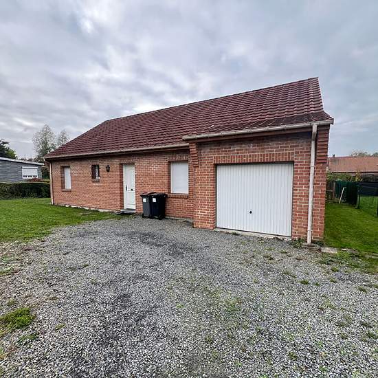 Jolie maison individuelle de plain pied en parfait état offrant hall d'entrée, séjour, cuisine équipée, 3 chambres, salle de bains et wc. Garage, terrain clos. Disponible de suite