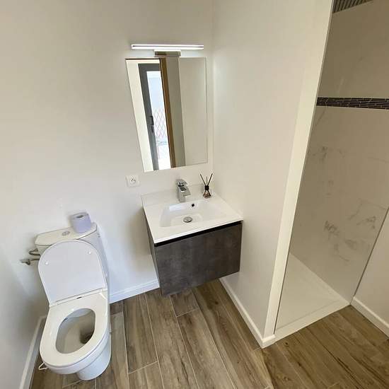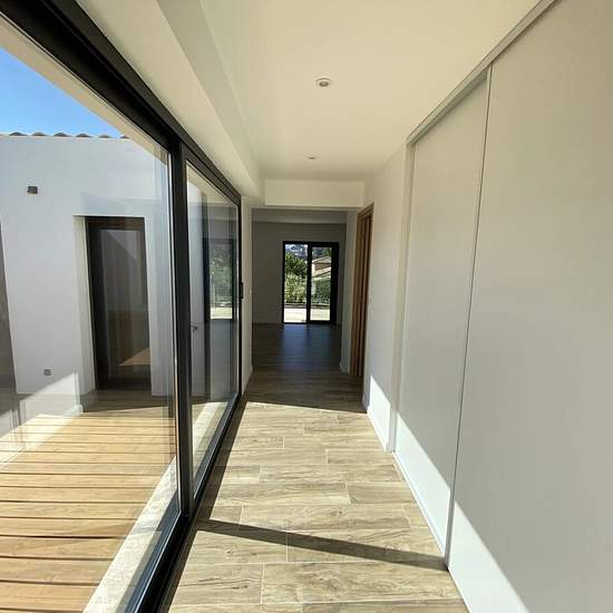 Maison neuve de type 3 totalisant 102 m2 avec un patio, une terrasse et un jardin. Elle se compose au Rez de chaussée d'une entrée avec visiophone, un dégagement avec un grand placard, un grand séjour avec coin cuisine entièrement équipée et aménagée donnant sur une terrasse de 22 m2 exposition Sud, une salle d'eau avec WC, une suite parentale avec douche à l'italienne et un patio de 20m2. En souplex, un grand bureau/buanderie et une grande chambre. Portail électrique. Plusieurs emplacements de stationnement privée dans le jardin dont une co...
