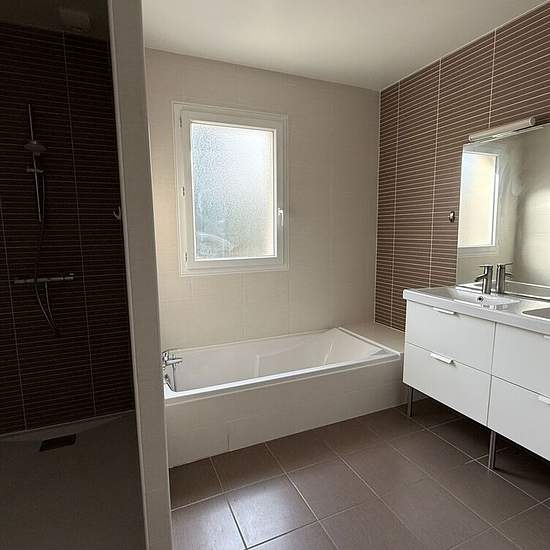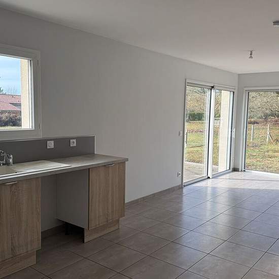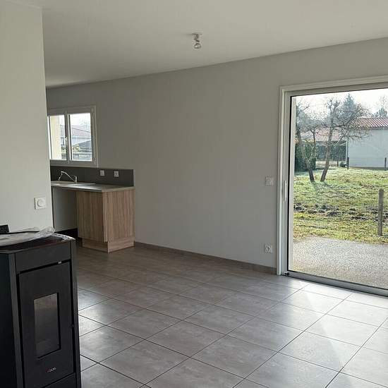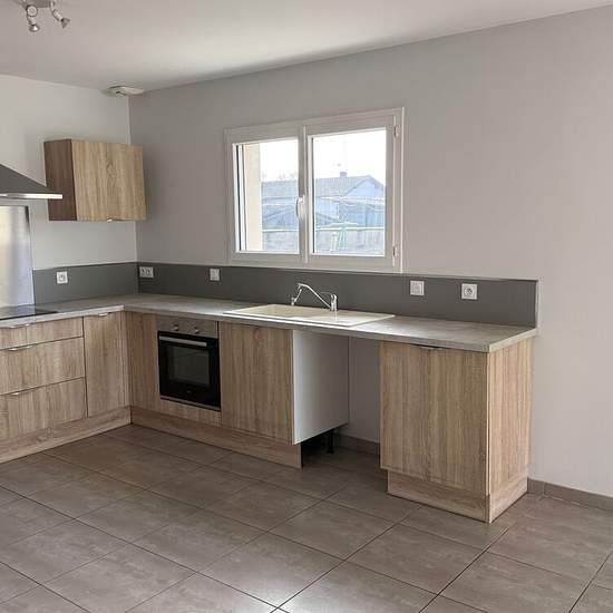 Maison à Louer 89m² - 3 chambres - jardin. Maison récente composée d'une cuisine aménagée, un séjour avec poêle à granules, trois chambres, une salle de bain avec douche et baignoire, un cellier, un W.C séparé, une terrasse et un jardin clos. 25€ de charges (provisions ramonage + TEOM). Location soumise aux plafonds de ressources PINEL. Disponible immédiatement