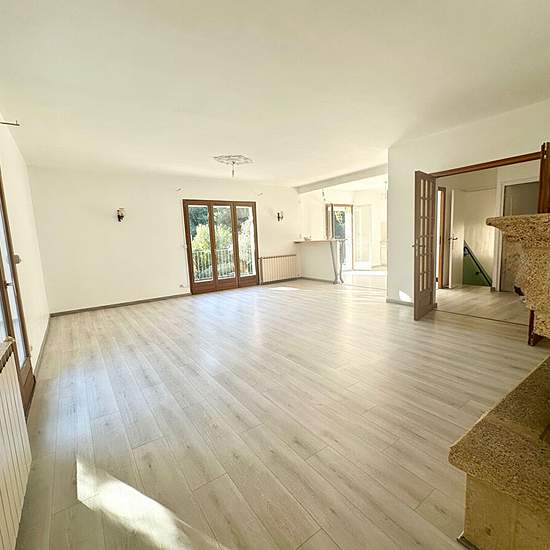 MONTAGNAC PROCHE CENTRE Dans un environnement paisible et verdoyant, Clément de l'agence l'Adresse Gaia Immobilier Mèze vous propose la location de cette spacieuse villa de 131 m² construite sur un terrain arboré d'environ 300 m², alliant confort, luminosité et espace. Au rez-de-chaussée : -Un grand garage de 95 m² pouvant accueillir plusieurs véhicules ou convenir à une activité professionnelle avec buanderie, salle d'eau, WC et local technique, -Un jardin arboré avec grande terrasse couverte et abri de stockage. À l'étage : -Une grande vér...
