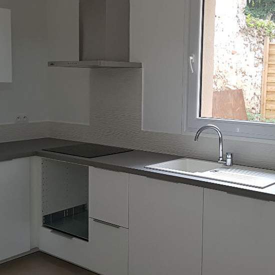 Maison de type F3 avec un étage : ENTREE SUR SEJOUR CARRELE AVEC CUISINE AMERICAINE AMENAGEE UN WC A L'ETAGE AVEC DEUX CHAMBRES SALLE D EAU CHAUFFAGE ELECTRIQUE INDIVIDUEL PAS DE JARDIN NI DE PARKING Disponible fin décembre.