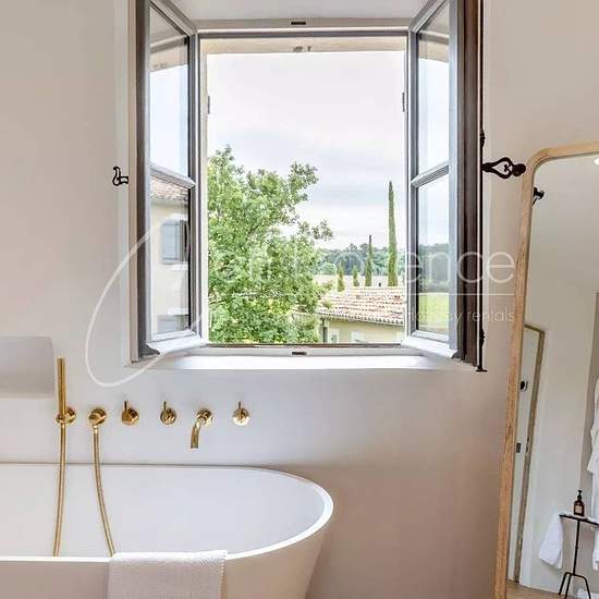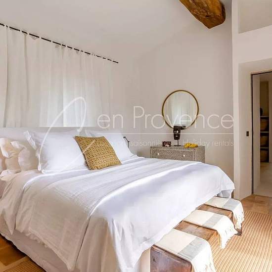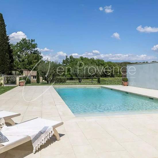 Au coeur du triangle d’or du Luberon, entre Ménerbes et Oppède le Vieux, cette élégante location de vacances bordée de vignes, est une destination idéale pour votre séjour en Provence. La maison entièrement climatisée, a été élégamment décorée, avec des œuvres d'art et des meubles contemporains, avec une touche distinctive de style provençal. A l’extérieur, le jardin est magnifiquement paysager, agrémenté d’une piscine chauffée de 11m X 5m et une plage attenante avec les chaises longues de piscine et de parasols, idéale pour se détendre avec...