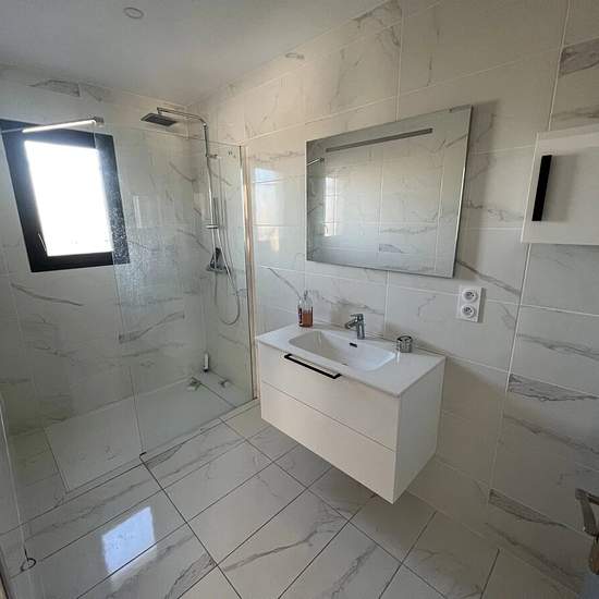Située dans un lotissement calme de Ouveillan, cette maison moderne de plain-pied, libre sur deux faces, offre une surface habitable de 74 m² sur une parcelle de 230 m². Avec climatisation gainable, système d’alarme et possibilité de stationner un véhicule devant la maison Louée meublée, elle se compose de : Un séjour lumineux avec cuisine ouverte Deux chambres équipées de placards intégrés Une salle d’eau WC séparés Un garage LOYER MENSUEL : 950 € CHARGES MENSUELLES : 30 € DEPOT DE GARANTIE : 1 800 € HONORAIRES PART LOCATAIRE : 703 € Maison...