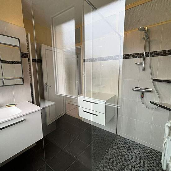 Maison de type 5 Entrée avec placards, WC, cuisine aménagée et équipée (plaque gaz, hotte), salle à manger et séjour ouvrant sur balcon. Dégagement avec placard, trois chambres et salle d'eau. Sous-sol comprenant buanderie, laverie, chaufferie et atelier. Cave et jardin complètent ce bien. Loyer : 1000.00 Euro hors charges + 50.00 Euro de charges (soumit à la régularisation annuelle) Dépôt de garantie : 1000.00 Euro Honoraires de location : 970.21 Euro