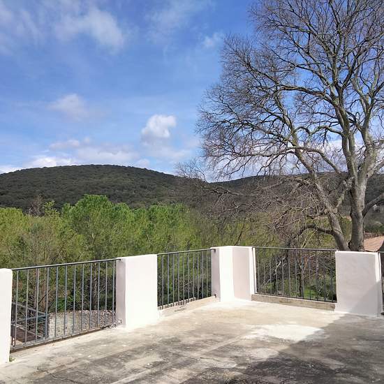 Maison de village 4 pièces, élevée de deux étages sur rez de chaussée, avec grande terrasse et vue dégagée sur les hauteurs de Puechabon. Le bien se compose au 1er étage d' une cuisine aménagée avec plaque de cuisson et hotte,le tout ouvrant sur le salon et la terrasse d'environ 30 m2. S'en suit une chambre,une salle d'eau et un wc séparé. Au second, deux chambres dont une avec aménagement de placard. Vous disposez d'un garage et de dépendances pour le stationnement et le stockage. Chauffages électriques et cheminée dans le séjour. DPE class...