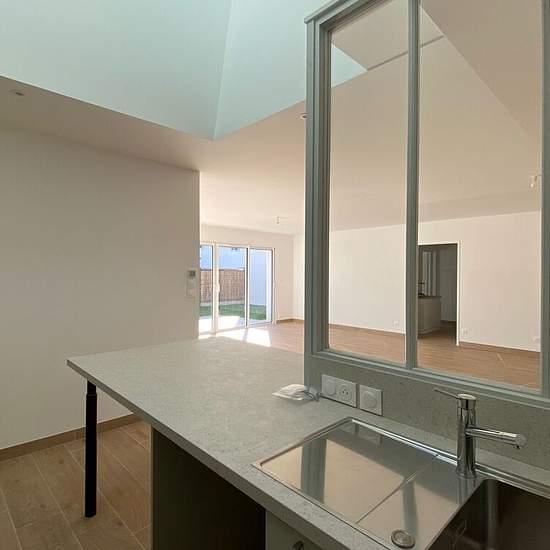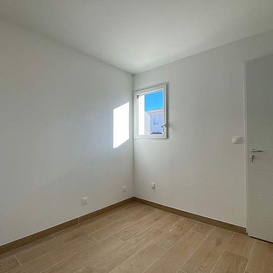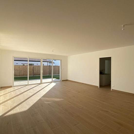Maison neuve à louer ! PUILBOREAU. Maison neuve individuelle de 113 m². Elle comprend une entrée desservant sur un magnifique séjour lumineux de 56.15m² avec une cuisine aménagée et entièrement équipée. L'espace nuit se compose de 2 chambres dont une avec dressing, une salle de bain, un WC indépendant. De plus, dans le continuité du garage de 15.95m² (avec porte électrique), vous y trouverez un cellier avec branchement pour la machine à laver, un point d'eau et la pompe à chaleur. Une pièce supplémentaire vient compléter l’ensemble, offrant...
