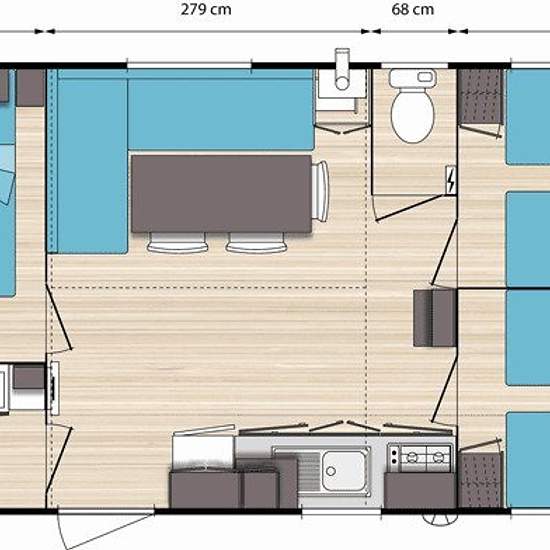 MOBIL-HOME 3 CHAMBRES – LOCATION ANNUELLE – CAMPING 5 QUIMPER Cadre exceptionnel à l'Orangerie de Lanniron. Louez à l'année ce spacieux mobil-home O'HARA 784 de 31 m², idéalement situé dans un domaine ouvert et sécurisé toute l'année. CARACTÉRISTIQUES : • Capacité : 3 chambres (1 lit double / 4 lits simples). • Confort : Salle de douche et WC séparés. • Extérieur : Terrasse bois et place de stationnement privative sur parcelle verdoyante. ÉQUIPEMENTS & MOBILIER : • Cuisine : Plaques gaz, hotte, micro-ondes, réfrigérateur, petit él...