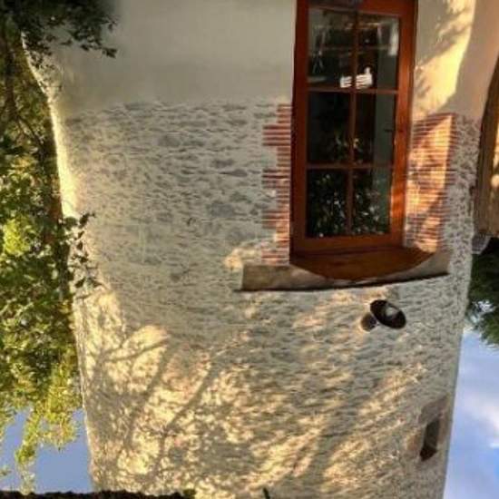 Pour bail étudiant. Le logement est situé sur notre terrain mais dispose d'une entrée séparée dans la rue. C'est un ancien moulin rénové ces 4 dernières années. La terrasse est privative. Le rez-de-chaussée comprend la kitchenette et le coin repas (environ 7 m2). Le premier étage comprend la salle de bain (grande douche et meuble vasque) et le WC (environ 7 m2). Le deuxième étage pour la chambre (environ 7 m2) avec un lit double. L'ensemble comprend suffisamment de rangements pour un étudiant. L'accès WIFI est gratuit (raccordé à notre propr...
