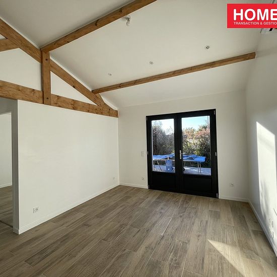 L'agence HOME 40 vous propose A LOUER à l'année cette maison individuelle à Sanguinet, idéalement située dans une impasse et proche du port de l'Estey. Maison neuve de 40.14 m² comprenant une pièce de vie avec cuisine aménagée et équipée (plaque, hotte, four), 2 chambres ainsi qu'une salle d'eau avec WC. A l'extérieur, une terrasse ainsi qu'un coin jardin. Une place de stationnement est également à disposition. Chauffage : climatisation réversible. Montant du loyer charges comprises : 965 euros/mois, location meublée (950 euros de loyer + 15...