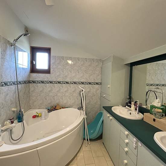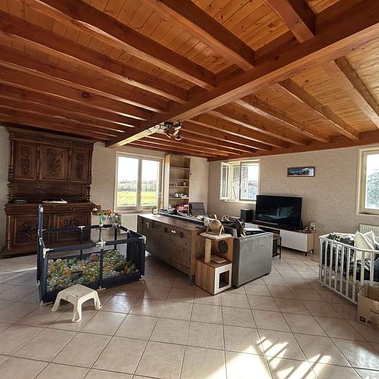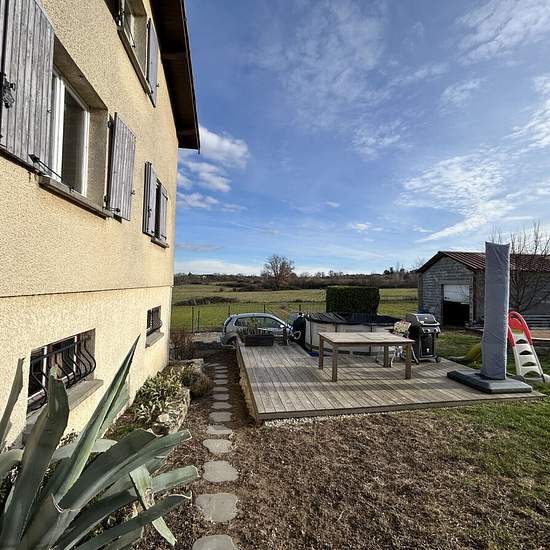 Soucieu - Le Marjon: a 1989 house of 112 m² of living space over two levels with an underground garage and an adjoining plot of approximately 300 m². It comprises on the ground floor an entrance, a large living/dining room of 45 m², and a separate fitted kitchen of 17 m². On the upper floor: landing, 2 large bedrooms of 18 m², a bathroom and a separate WC. Rent €1,070/month + €150 monthly charges including cold water and heating. Available mid-March. Agency fees €800 incl. tax (of which the inventory fee is €165). Security deposit €1,070. En...