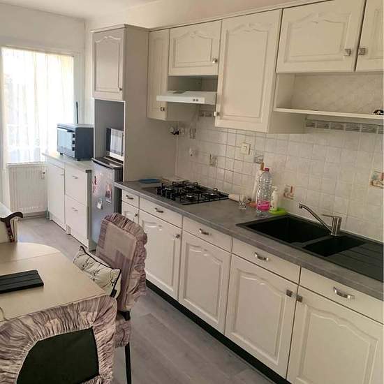 Appartement au rez de chaussé (rez de chaussé surélevé) Dans résidence sécurisée avec ascenseur Au calme mais proche du centre Entrée avec placards Cuisine avec balcon Grand salon/séjour 2 chambres Salle de bain avec douche 1 cave 1 garage et une place de parking Chauffage collectif gaz Loyer 650€/mois Provisions sur charges avec régularisation annuelle : 150€/mois comprenant l'entretien des communs, l'eau chaude et l'eau froide, le chauffage