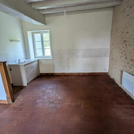 Saint eloy de gy à 8 km de bourges - maison de type 3 de 70 m². Maison de plain pied rénovée comprenant un séjour / salon avec cuisine, deux chambres, une salle d'eau avec wc, un cellier- buanderie, une entrée. Loyer 705.00 euros chauffage électrique et poêle à bois sur terrain de 200 m² avec partie potager possible ecole primaire et commerces dans la commune centres commerciaux à 8 minutes libre dpe en cours honoraires : 761.00 euros (dont edl 210 ).