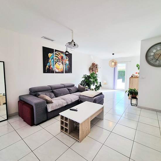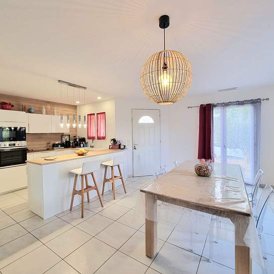 Léonie de l'agence Immojoy vous propose cette charmante villa de plain-pied d'une surface habitable de 82 m², idéalement située dans un quartier calme de Saint-Marcel-sur-Aude, proche de toutes les commodités, sur une parcelle de 491 m². Vous découvrirez une lumineuse pièce de vie de 50 m² avec sa cuisine moderne entièrement équipée, offrant un accès direct au garage de plus de 15 m². La partie nuit se compose de deux chambres de 10.36 m² et 10.28 m² avec placard, d'une salle de bains avec double vasque de 5 m², d'un dressing indépendant et ...