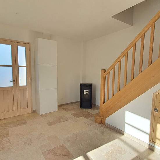 Maison de type 3 , rénovée récente avec matériaux de qualité, entrée , cellier, séjour équipé d'un poêle à granules, avec cuisine ouverte aménagée et équipée. A l'étage dégagement, 2 chambres, SDE et WC. Petit extérieur avec terrasse. Loyer 850 euros + 44 euros de charges .( Ordures ménagères 13 euros+ contrat entretien poêle 17 euros+ contrat entretien chauffe eau thermodynamique 14 euros). Libre mi février 2026. Les informations sur les risques auxquels ce bien est exposé sont disponibles sur le site Géorisques :