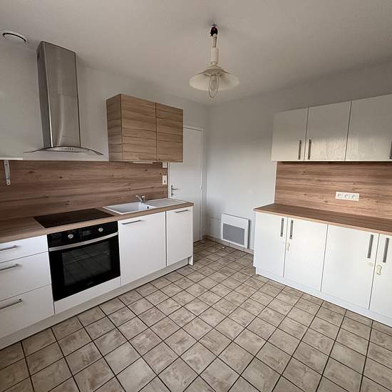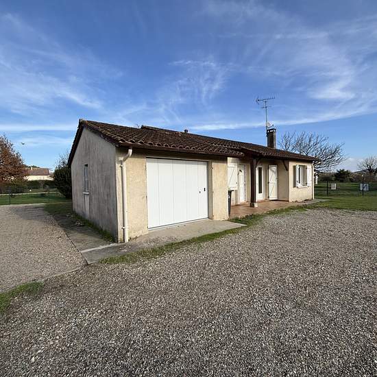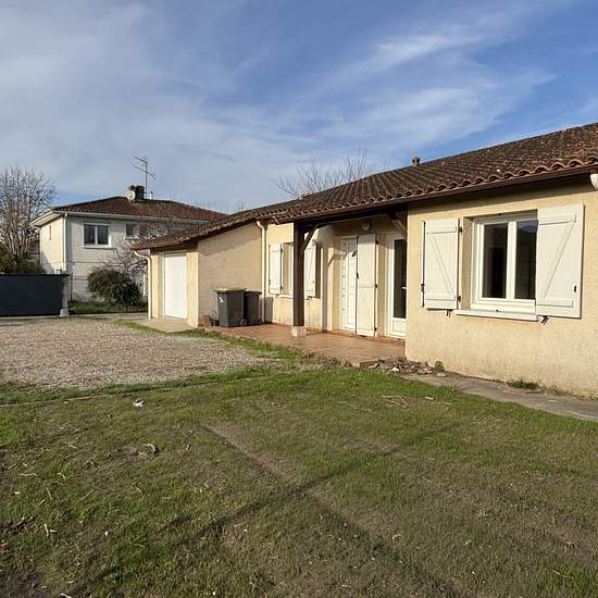 À louer, proche du centre ville, villa de plain-pied sur une parcelle de 663m2. Elle se compose d'une entrée avec placard, une grande pièce de vie, une cuisine séparée entièrement équipée (hotte, plaque, four et lave vaisselle). Coin nuit, trois chambres dont deux avec placards, un wc et une salle de bain. Garage et jardin entièrement clos. Chauffage radiateur électrique. DPE D. Loyer 800EUR CC. Caution 800EUR. Frais d'agence 672EUR dont 96EUR pour l'état des lieux. DISPONIBLE IMMEDIATEMENT