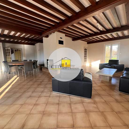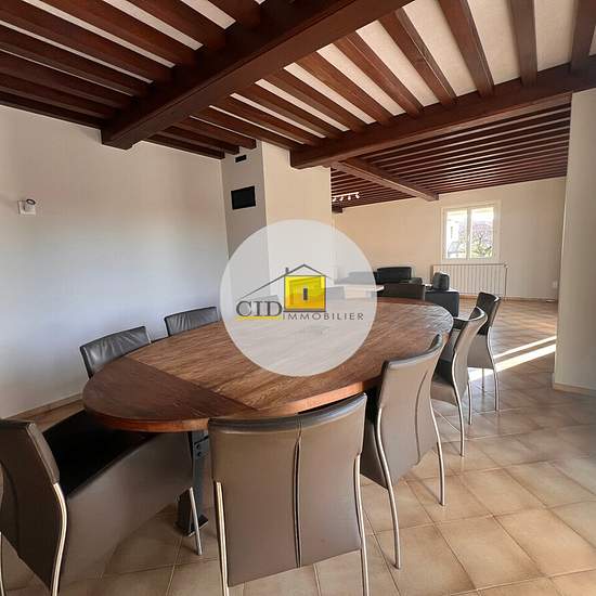 Maison meublée avec sous-sol complet et jardin Située dans un environnement calme et agréable, cette maison meublée offre de beaux volumes et un cadre de vie confortable. Elle dispose d'une surface habitable de 177 m², d’un sous-sol complet de 155 m², d’une cave et d’un extérieur soigné d’environ 500 m². Au rez-de-chaussée, vous trouverez une entrée chaleureuse avec un poêle à granulés, un double séjour lumineux avec cheminée (55 m²), une cuisine entièrement équipée, un bureau, une chambre, une salle de bains avec baignoire et douche, ainsi ...