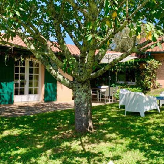 USTARITZ Charmante maison de plain pied entourée d'un jardin, de 1000 m2 à 20 mn de Biarritz et Bayonne, 4 Kms d'Arcangues au calme. Elle se compose d'un salon avec canapé et 2 fauteuils, TV (+ Netflix) une table avec 6 chaises et une cuisine équipée ouverte donnant sur le jardin 1 chambre avec un grand lit 160 et un lit single plus une grande armoire et un bureau 1 chambre avec 2 lits single plus une grande armoire une salle de douche WC A louer hors été.... Updated on 19/01/2026 Mise à jour le 19/01/2026