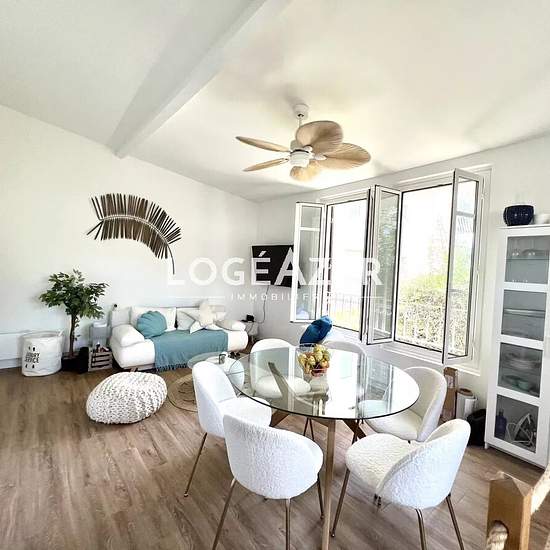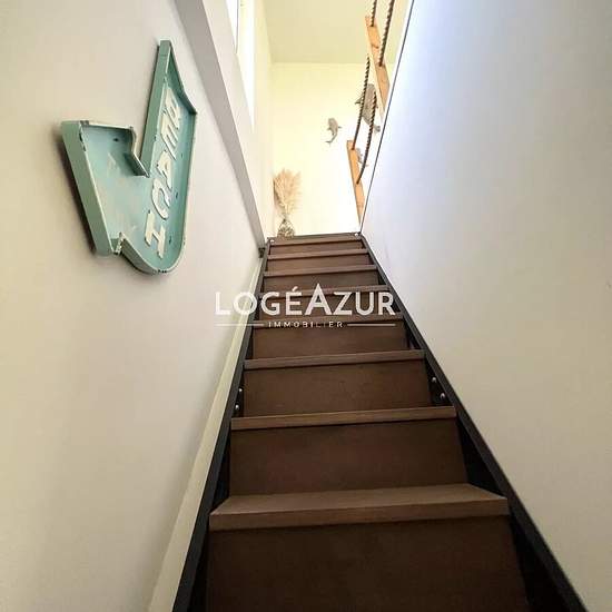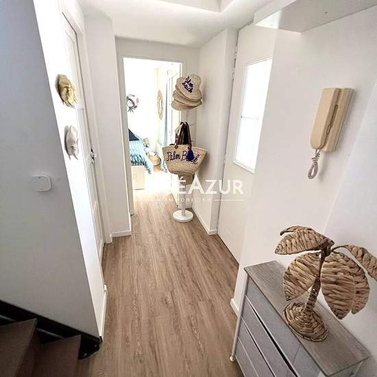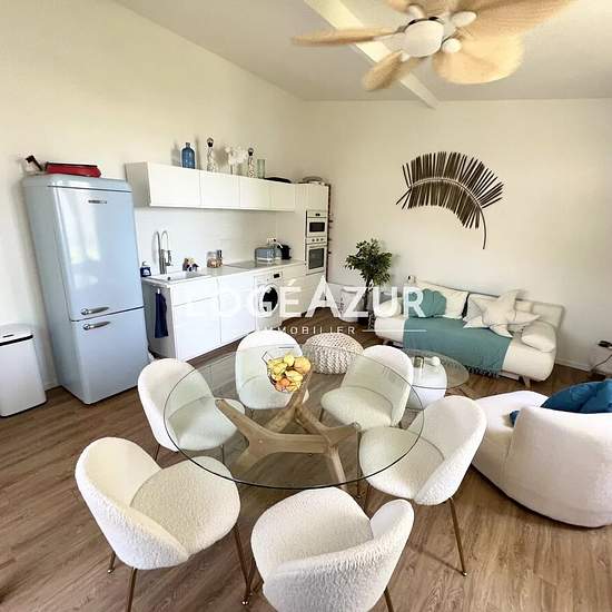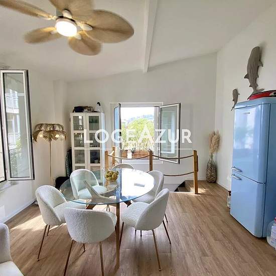 Exclusive! Unique on the GOLFE-JUAN seafront, a house entirely renovated with taste in a condominium: upstairs a living room with open kitchen; on the ground floor 2 bedrooms, 2 shower rooms and toilets. Private outdoor space of approximately 7 m². Communal PARKING (17 spaces) in the residence. The house is set back from Avenue des Frères Roustan. It benefits from a sea view from the upper floor. Take advantage of this atypical property quickly. Contact us for more information. Information on the risks to which this property is exposed is av...