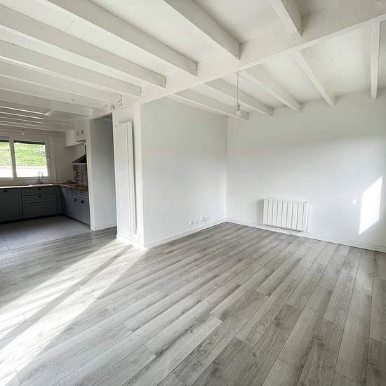 Charmante maison de 3 pièces sur un terrain de 300m2 comprenant : entrée, séjour, cuisine ouverte sur le séjour, salle d'eau avec wc. Accès sur grande terrasse au calme. A l'étage : dégagement avec placard, 2 chambres dont une avec rangements. Parking extérieur. En raison de travaux le bien sera disponible à partir du 01/01/2026. Actualisation de la classification énergétique passant à 66 / 2 à la suite des travaux (A).