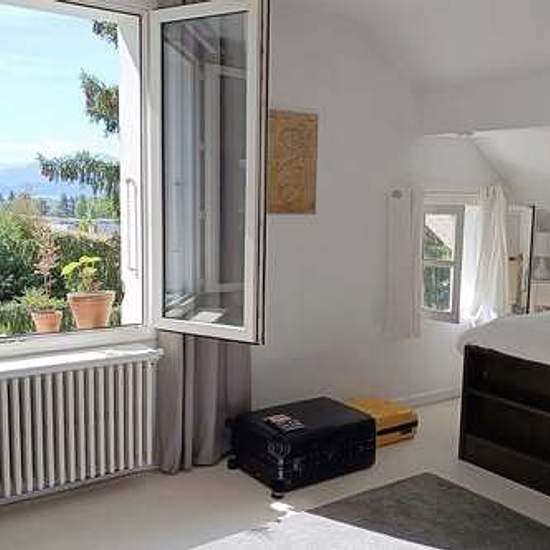 Il reste une chambre disponible dans cette jolie maison sur les hauteur d annecy le vieux , lumineuse très au calme et plutôt spacieuse, 180 m2 La chambre est disponible dès à présent Elle fait 30 m2 !!! avec une vue magnifique sur tout annecy, lit 2m/2m, tout le linge de lit neuf de cet été est fourni Sur la gauche de la photo, non visible, un bureau ainsi qu une grande penderie intégré La maison est biensur entièrement meublé et équipé grande buanderie avec sèche linge lave linge centrale vapeur Une cave disponible Une place de ...