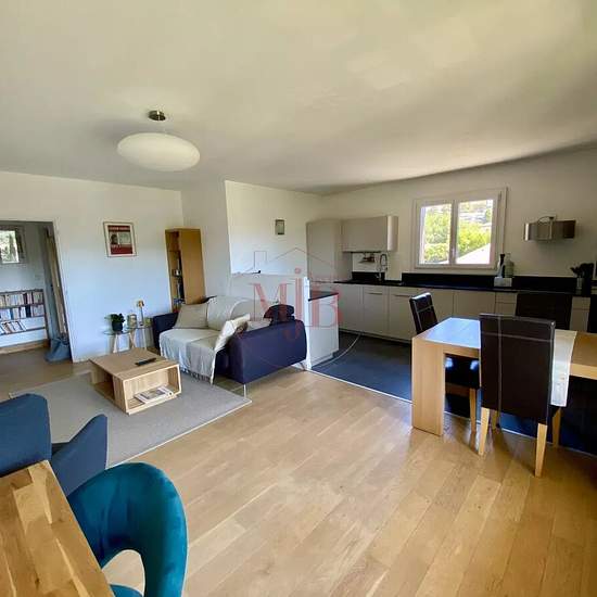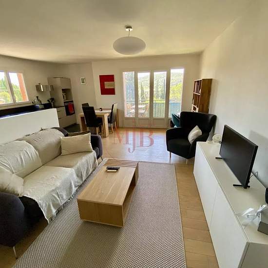 Appartement 4 pièces Aix en Provence, quartier sud. Dans résidence sécurisée de standing, magnifique appartement rénové, bénéficiant d'une terrasse et d'un garage fermé en sous sol. La partie à vivre comprend une entrée qui s'ouvre sur une belle pièce de vie de 30 m2 avec cuisine ouverte équipée, le tout donnant sur une terrasse exposée au sud de 8,4 m2. 3 chambres, 1 salle de douche, W.C. séparé complètent ce bien. Location meublée. Loyer mensuel: 1600 euros + 170 euros provisions sur charges incluant le chauffage, l'eau chaude, l'entretien...