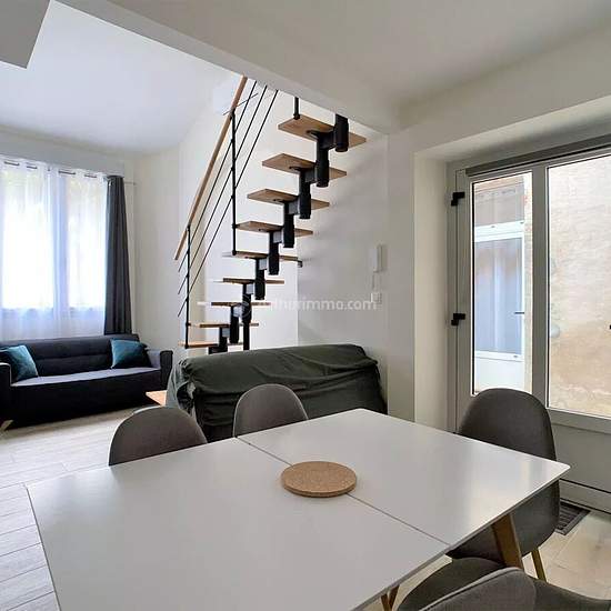 Albi, 200 m from Place du Vigan. Furnished four-room apartment of approximately 51 m² with one parking space. It comprises a living area with an open-plan, fitted and equipped kitchen (extractor hood, induction hob, oven, refrigerator, dishwasher and washing machine), one bedroom, a shower room and a separate toilet. Upstairs: two bedrooms with built-in closets. Charges include garbage collection, maintenance and electricity for the common areas, and the Wi‑Fi connection. Available mid-February.