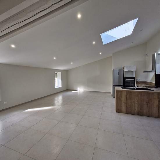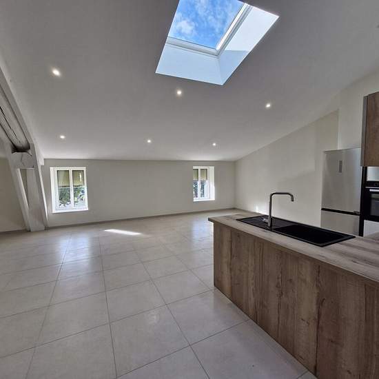 Bel appartement T4, seul au 2ème étage (avec ascenseur), d'une bâtisse entièrement rénovée, située à la sortie Nord d'Ampuis - Rue de la Félodière : un logement d'une surface 109m² : Grande Pièce de vie avec cuisine ouverte, aménagée et semi équipée (Four, plaque de cuisson, LV, hotte, frigo/congélateur). 3 chambres dont 2 avec salle d'eau + une salle de bains. Cellier fermé. Chauffage par Pompe à chaleur + sol rafraichissant. Local vélos. 1 garage loué 60 ? / mois en sus. Disponible de suite. Pour davantage de renseignement, veuillez nous c...