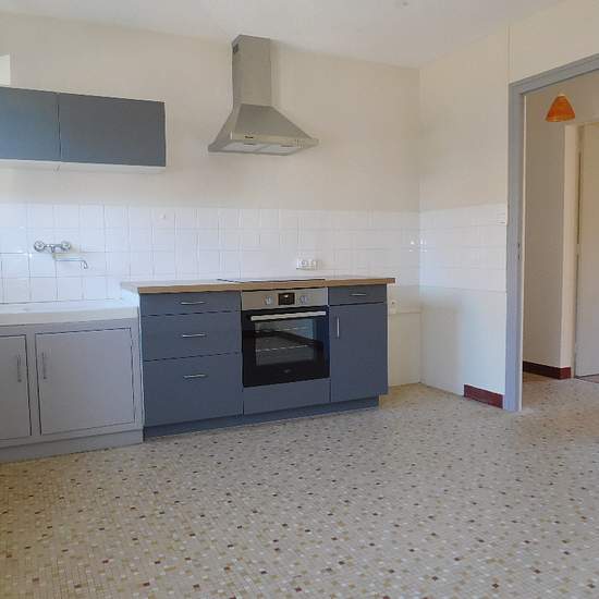 Appartement de type 4 situé à proximité du centre-ville et composé comme suit : une entrée desservant, un séjour, un w-c, une salle de bains (baignoire + douche), une cuisine aménagée et équipée (four, plaque et hotte), trois chambres. Il dispose également d'un garage, d'un cellier et d'un jardin partagé. LIBRE .