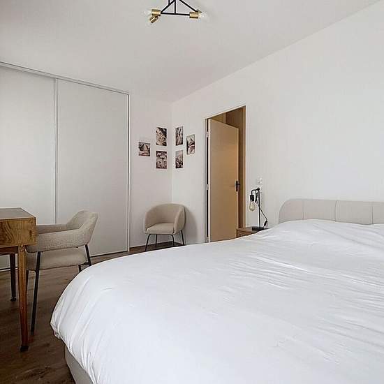 3 BEAUTIFUL FURNISHED ROOMS - FOR RENT IN A NEW APARTMENT. The 3 rooms are tastefully furnished, with very fine finishes, located in the immediate vicinity of the city center, opposite the train station. In a secure and quiet residence that has just been delivered, this 69 m² apartment, built in 2024, offers a very pleasant living environment. It includes a fitted kitchen, a bathroom, a separate toilet and a balcony. 3 rooms available: 1st room of 11.22 square meters, rent 850 euros - Security deposit 1700 euros - Agency fees 145.86 euros...