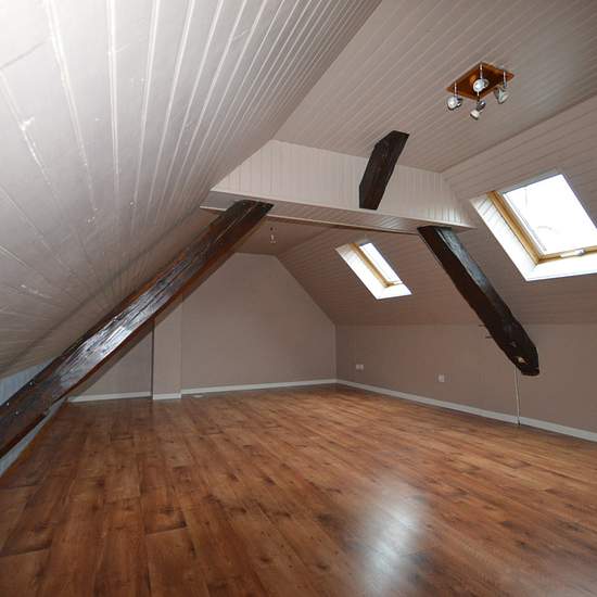 Bart, centre village, appartement en duplex dans une petite copropriété avec garage. Il comprend : Au 1er niveau : cuisine équipée récente, séjour, dégagement, wc. À L'étage : 3 chambres, grande sdb avec douche et baignoire. Chauffage gaz (chaudière récente) Libre de suite Loyer : 750EUR (Dont 30EUR de charges pour entretien chaudière et eau) Dépôt de garantie : 720EUR Honoraires charge locataire : 453.60 (Dont 129.60 pour état des lieux)