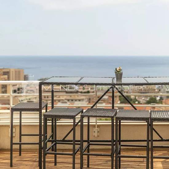 In affitto: lussuoso attico di 92 m2 con vista panoramica sul Principato e sul casinò. Questa oasi di pace si sviluppa su due livelli: Il primo livello comprende un ampio soggiorno, tre camere da letto e due bagni, tutti arredati con gusto e con mobili di qualità. Vi è anche una magnifica terrazza sul tetto con jacuzzi, barbecue, zona pranzo e vista ininterrotta su Monaco e sul mare. Situato vicino alla frontiera di Monaco con accesso diretto tramite scale mobili. Un ampio parcheggio e una cantina completano questa proprietà. Affitto arredat...