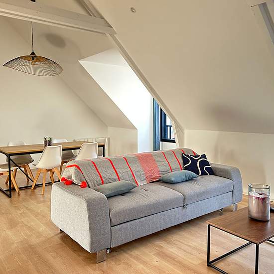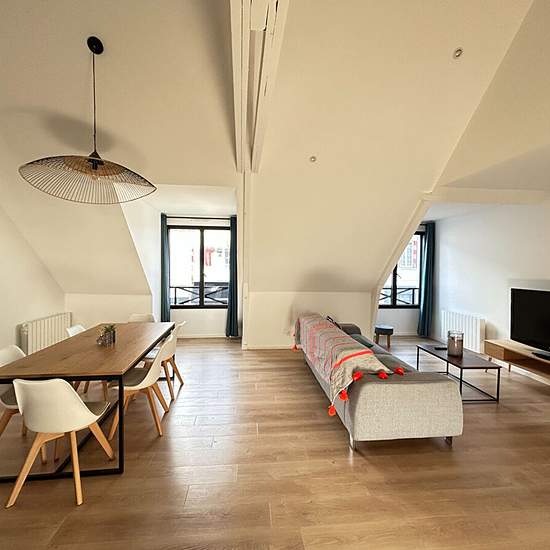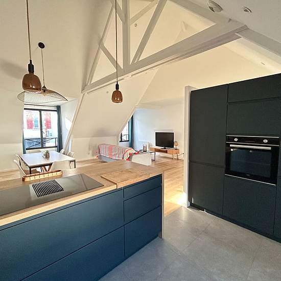 Au coeur de Bénodet, à deux pas des commerces et des plages, laissez-vous séduire par le charme de cet appartement de type 4, situé au premier et dernier étage d'une petite copropriété. Entièrement rénové avec soin, cet appartement meublé de 90 m² allie le cachet de l'ancien et le confort moderne : parquet en bois, poutres apparentes et belle hauteur sous plafond offrent une atmosphère chaleureuse . Dès l'entrée, vous découvrez une spacieuse pièce de vie lumineuse, sublimée par son parquet, avec une cuisine aménagée et entièrement équipée (é...