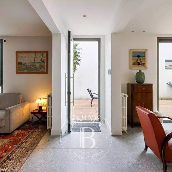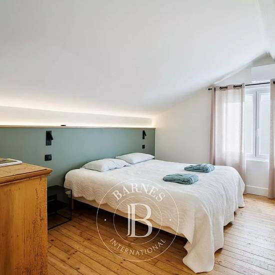 Située dans le centre de Biarritz, cette maison de 110 m², accompagnée d’un patio végétalisé de 100 m², offre un cadre de vie unique, alliant confort et tranquillité en centre de Biarritz. Le rez-de-chaussée se compose d’un salon, d’un espace télé et d’une cuisine ouverte sur la terrasse. À l'extérieur, le patio végétalisé est équipé d’une table à manger et d’une plancha. L’étage est consacré à l’espace nuit, composé de deux chambres. La première chambre, dispose d’un lit Queen Size et d’un dressing séparé. La deuxième, offre un lit King Siz...