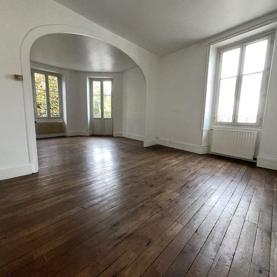 Bourges - Quartier Séraucourt - Type 4 - 98.85m2 Dans immeuble proche des commerces de proximité et de la Navette gratuite qui mène à l'hyper centre, appartement de 98.85m2, avec du charme, comprenant : une entrée, un séjour-salon donnant sur un petit balcon, une cuisine, deux chambres, un dressing, une salle de bains et un WC. Chauffage individuel gaz Loyer mensuel de 785EUR par mois charges comprises dont 60EUR de provision sur charges avec régularisation annuelle. Dépôt de garantie de 725EUR Honoraires de location à la charge du locataire...