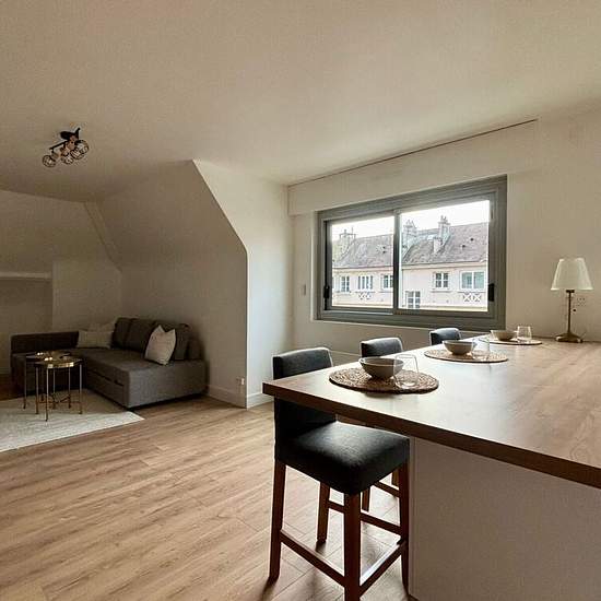 Appartement À Louer. Caen, hypercentre, coup de coeur pour ce bel appartement 5 pièces entièrement rénové et meublé à neuf. Il est composé d'un bel espace de vie avec cuisine américaine aménagée et équipée, de 3 chambres, d'une salle d'eau, d'un wc. Lave-linge et lave-vaisselle. Cave