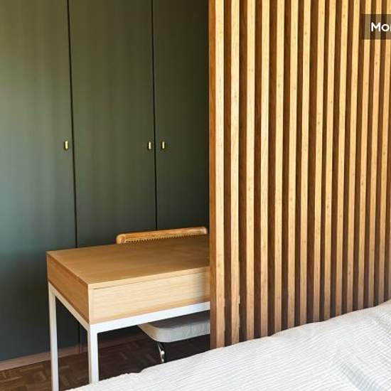Enjoy all the comforts of a bright, modern entire flat in Caluire-et-Cuire, 10 minutes from Lyon. This 105 m² 4-room apartment on the 2nd floor of a quiet residence has been fully renovated and tastefully decorated. Living space - Large living room with flat-screen TV, table, chairs and comfortable sofa - Fully equipped modern kitchen (oven, microwave, hob, extractor fan, dishwasher, fridge, freezer, washing machine, tumble dryer, full set of dishes) - Entrance hall with plenty of storage space Three bedrooms - Bedroom 1: double bed, desk, w...