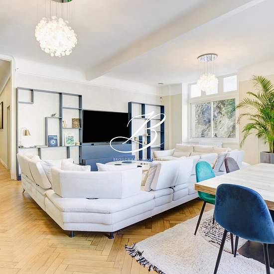 EXCLUSIVITE L'agence Brougham immobilier vous propose la location à l'année, ce magnifique appartement 4 pièces de 165,24 m2 totalement meublé situé au pied de La Croix des gardes au sein du « PALAIS BEAUSITE », résidence de renommée. L'appartement se compose comme suivant : -Un salon / séjour spacieux et lumineux -Une cuisine totalement équipée -3 chambres -2 salle de bains -Une salle d'eau -3 WC -Un garage fermé Ce bien de prestige de 165,24 m² a été entièrement conçue avec des matériaux de qualité, Le bien est disponible de suite. Honorai...
