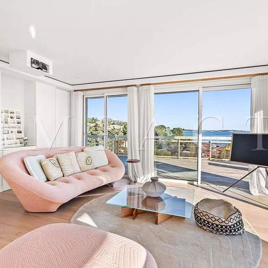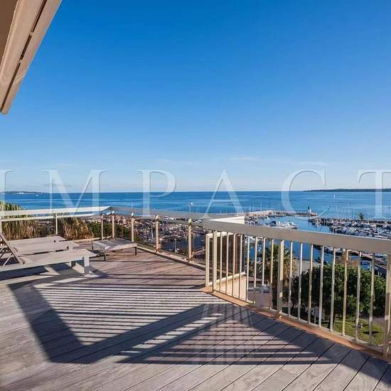 This beautiful three-bedroom apartment is located on the 5th and top floor of a luxury building in the Mouré Rouge neighborhood. The property has been completely renovated with high-quality finishes. It comprises a beautiful living room with an open-plan kitchen, three bedrooms with en-suite bathrooms (two of which have toilets), and a magnificent 151 m² terrace. This exceptional property enjoys stunning views of the sea and the hills of La Californie. Other amenities: Wi‑Fi, air conditioning, garage. Equipped for 6 people.