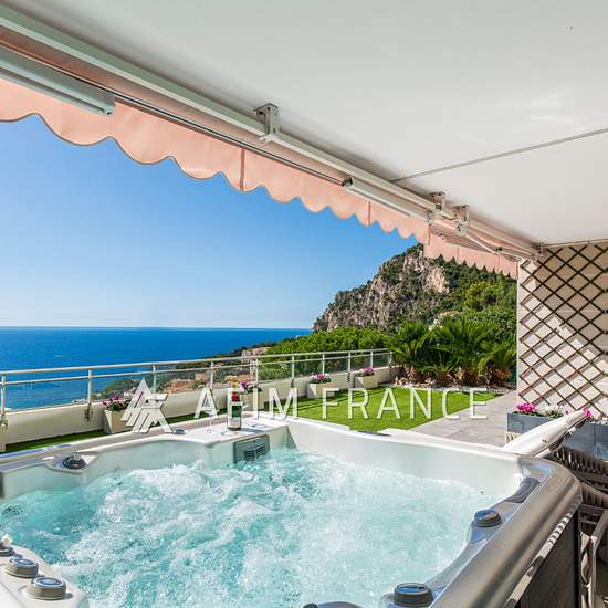 Dans une résidence de standing avec piscine à 100 m de Monaco, secteur Jardin Exotique. Magnifique appartement 4 pièces de 115 m² + 106 m² de terrasse-jardin, exposition plein sud, grand séjour, une cuisine indépendante, 2 chambres + une chambre de service ainsi qu'une pièce supplémentaire pouvant servir de bureau ou 4ème chambre. 3 salles de douches et une salle de bains. Jolie vue mer et Monaco. 2 parkings. Afficher le téléphone