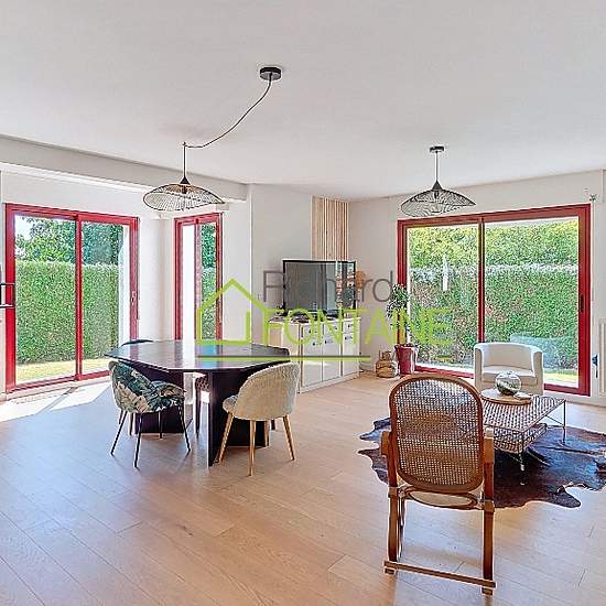 CESSON SEVIGNE - RICHARD FONTAINE IMMO - A LOUER - Très agréable Appartement T4 Meublé de 88.55 m² avec terrasses et jardin d'environ 100 m² + garage double en sous-sol. Cet appartement est situé au rdc d'une petite copropriété de 8 appartements, en retrait de la rue de Rennes (côté Cesson ), au calme et sans vis-à-vis. Il est composé d'une entrée avec grand placard, d'une belle pièce de vie avec cuisine ouverte ouverte de + 40 m² exposé S/E avec accès à 2 terrasses et un jardin privatif. Le dégagement dessert 3 chambres dont 2 avec placards...