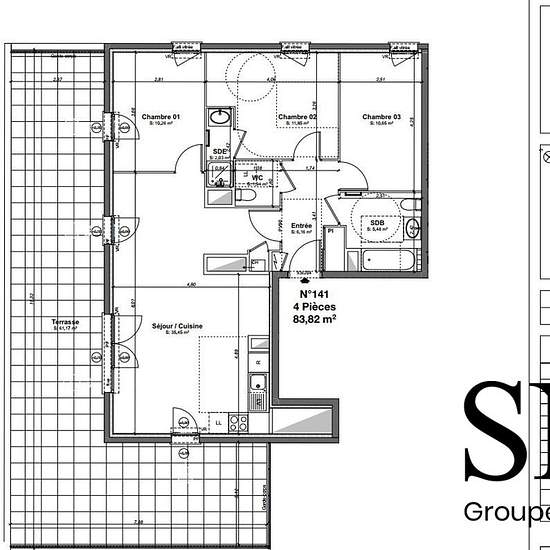 SERENITE GESTION // DISPOSITIF PINEL // RESIDENCE TERRASSE ET VILLA DU PARC DISPONIBLE LE 24/11/2025 Situé à 10 minutes du centre-ville de Chartres et à 3 minutes de l'autoroute A11. Vous profiterez d'un quartier calme et idéal pour vivre à Chartres. Contactez M. MIEUSEMENT au 06x02x08x47x97 ou par mail EMAIL pour visiter ce bel Appartement T4 au R+4 de 83.82 m² avec une terrasse de 61.17 m². Un séjour donnant sur une cuisine équipée d'une plaque de cuisson, hotte, évier, plan de travail, meubles. Trois chambres dont une avec salle d'eau. Un...