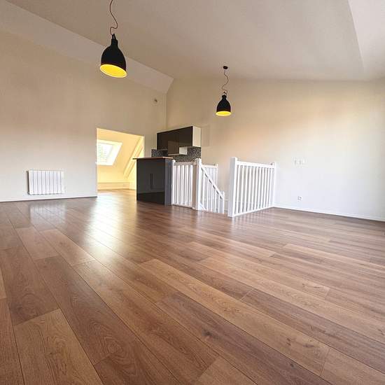 Duplex avec terrasse et parking situé à proximité du Bois de Clamart, du RER C Meudon ou de la Gare de Clamart. Appartement refait à neuf d'une surface de 75,25 m² (79,01 m² au sol) situé au 2ème et dernier étage avec ascenseur. Au premier niveau : Une entrée, deux chambres dont une avec Balcon, une salle de bains, une buanderie avec WC (branchement lave-linge). Au second niveau : Un grand séjour (33 m²) donnant sur une grande terrasse (13,5 m²) avec vue dégagée, une cuisine américaine (évier, bar, rangements, branchement lave-vaisselle), un...